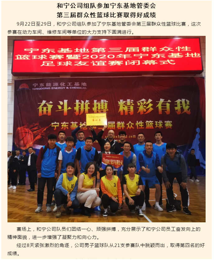 和寧公司組隊(duì)參加寧東基地管委會(huì)第三屆群眾性籃球比賽取得好成績(jī)