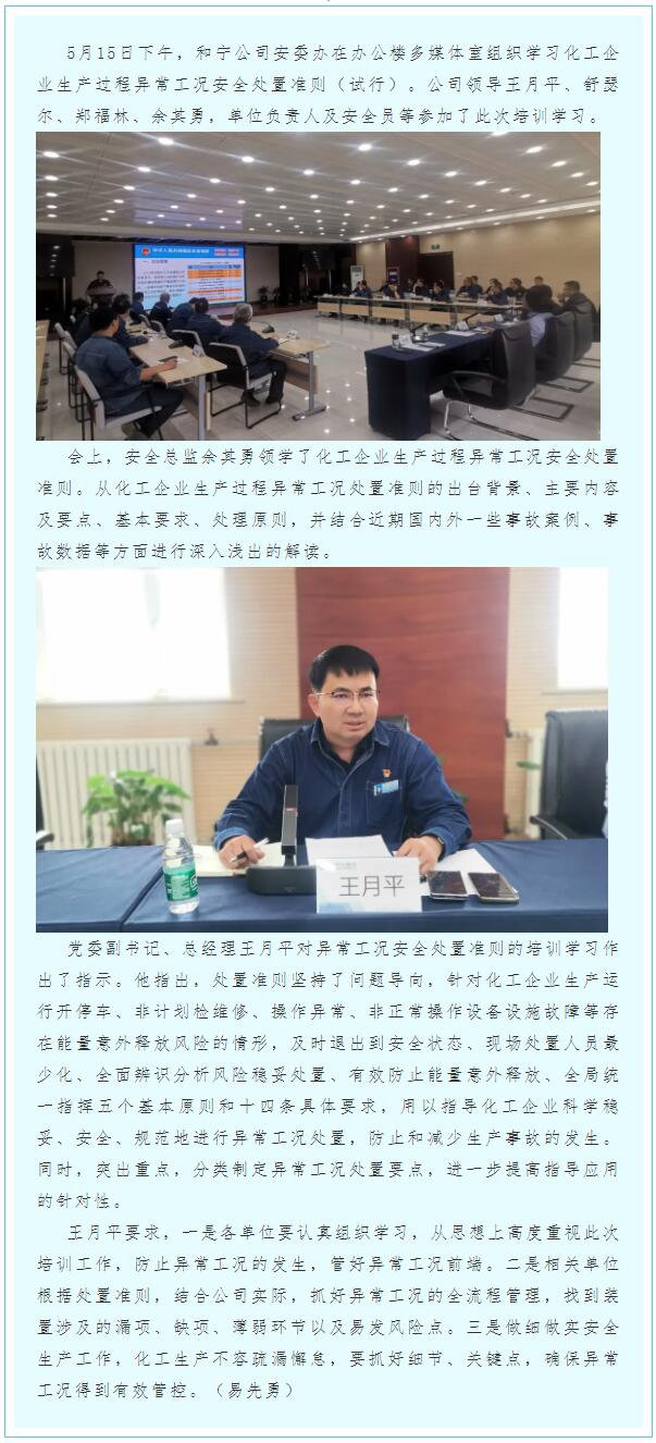 和寧公司組織學習化工企業生產過程異常工況安全處置準則(試行)