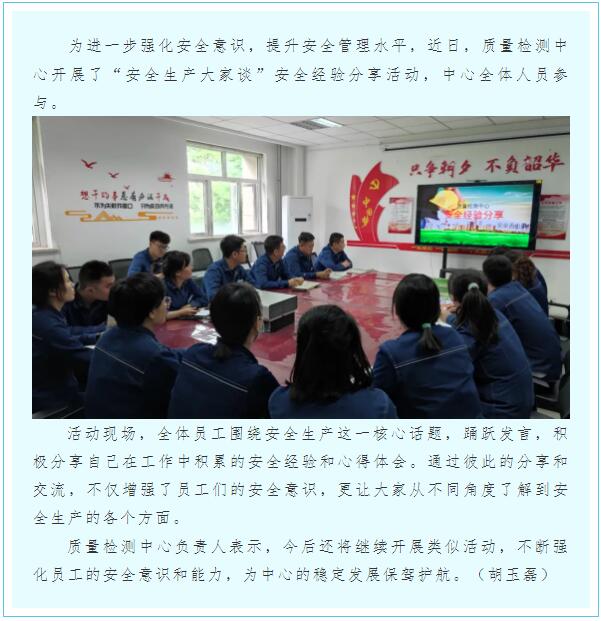 質量檢測中心開展“安全生產大家談”安全經驗分享活動