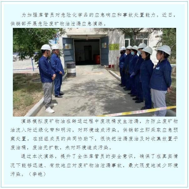 供銷部開展危險廢礦物油泄漏應(yīng)急演練