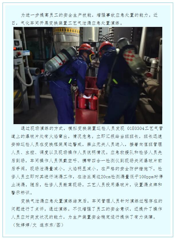氣化車間開展變換氣泄漏應急演練