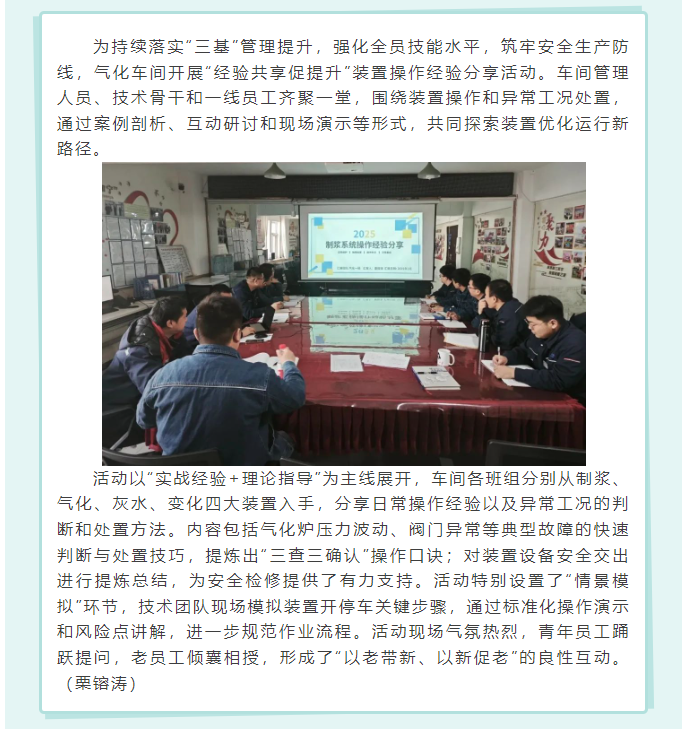 經(jīng)驗共享促提升——氣化車間開展裝置操作經(jīng)驗分享