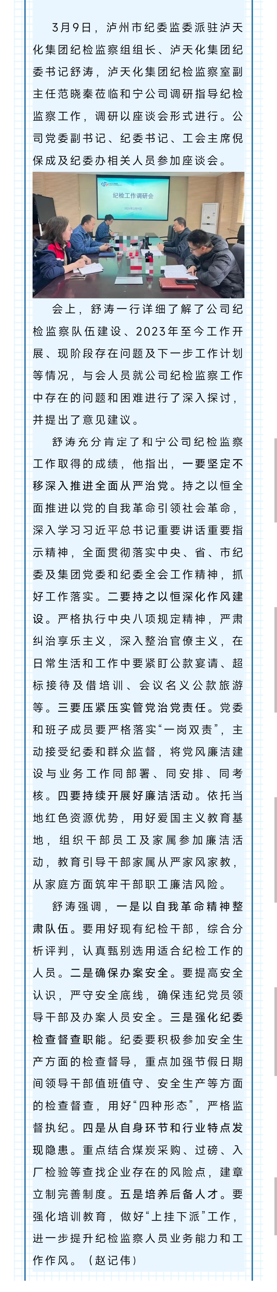 舒濤一行蒞臨和寧公司調研指導紀檢監察工作