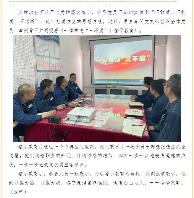 尿素車間黨支部組織觀看《一體推進(jìn)“三不腐”》警示教育片