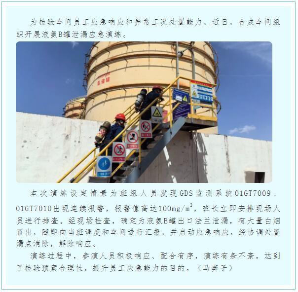 合成車間開展液氨B罐泄漏應(yīng)急演練
