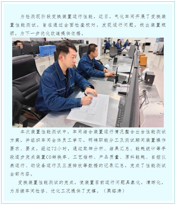 氣化車間完成變換裝置性能測試