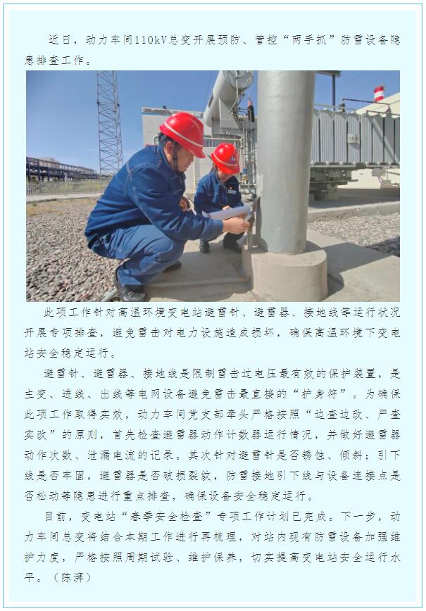 動力車間開展變電站“春安”防雷設備專項排查