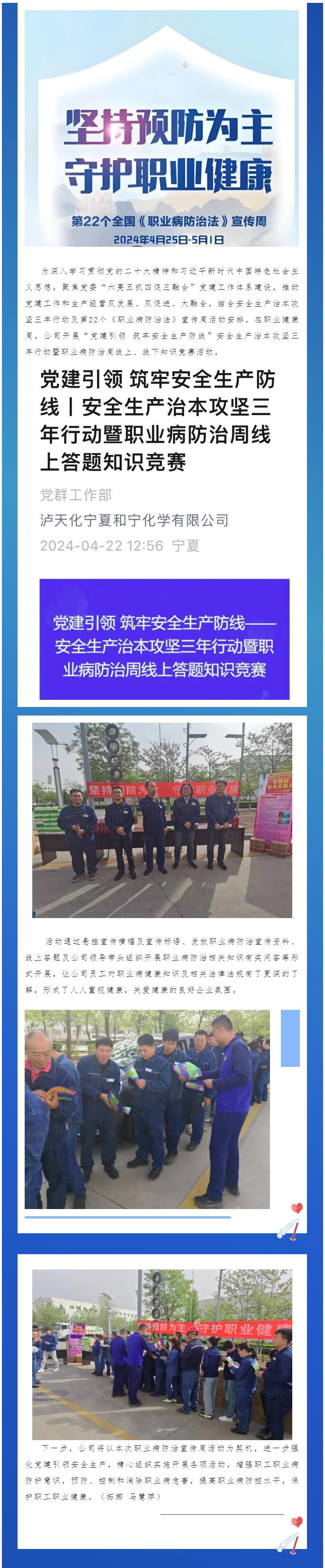 堅持預防為主 守護職業健康丨公司開展2024年《職業病防治法》宣傳周活動