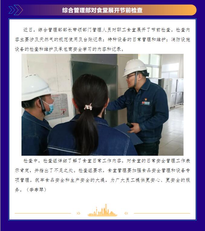 綜合管理部對食堂展開節(jié)前檢查