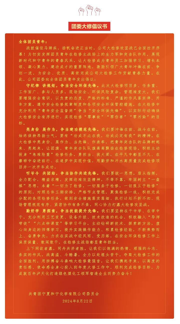 青春助力 檢修同行——和寧公司團委大修倡議書