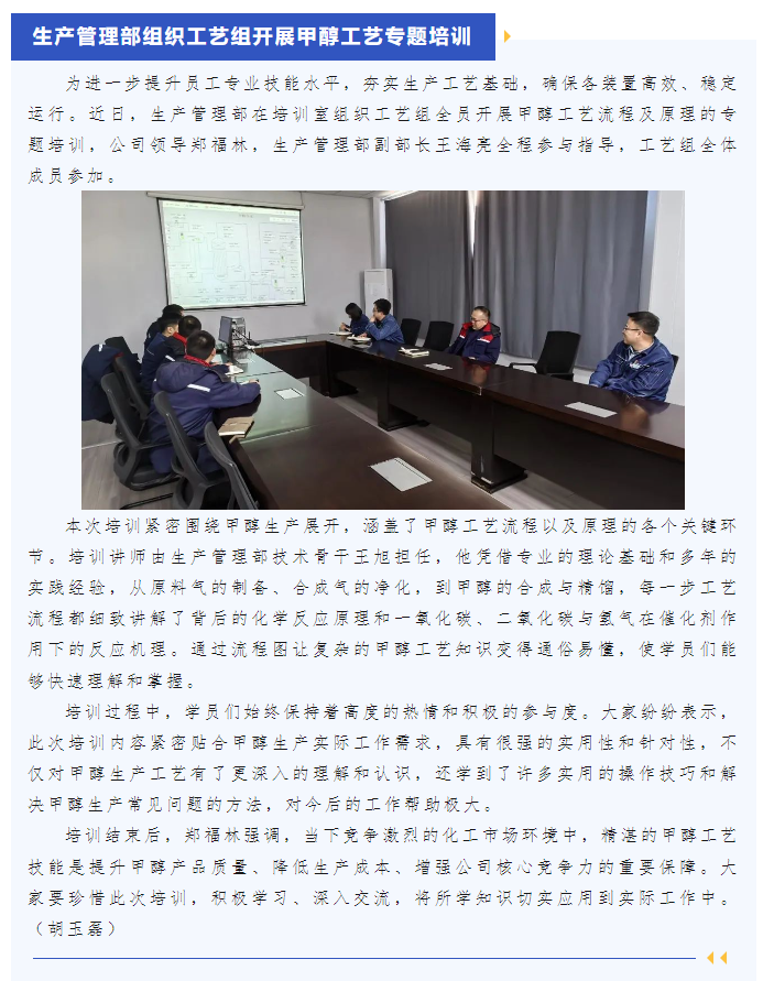 生產管理部組織工藝組開展甲醇工藝專題培訓