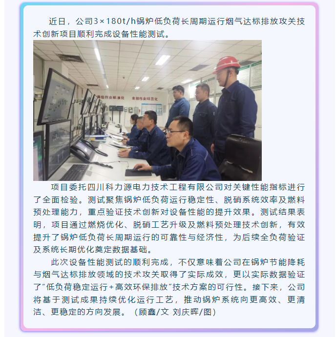 公司3×180t/h鍋爐低負荷長周期運行煙氣達標排放攻關技術創新項目順利完成性能測試