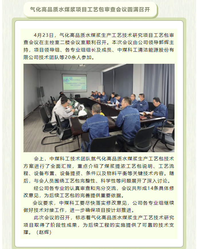 氣化高品質水煤漿項目工藝包審查會議圓滿召開