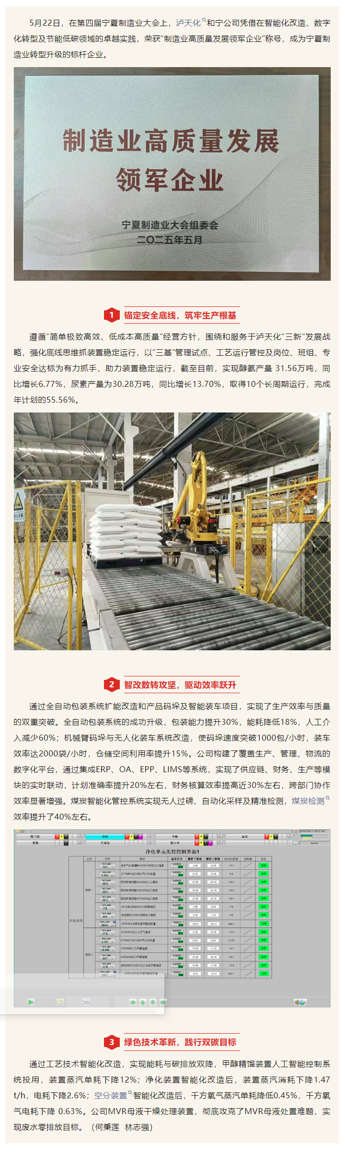 喜報(bào)!瀘天化和寧公司榮獲“制造業(yè)高質(zhì)量發(fā)展領(lǐng)軍企業(yè)”稱號(hào)