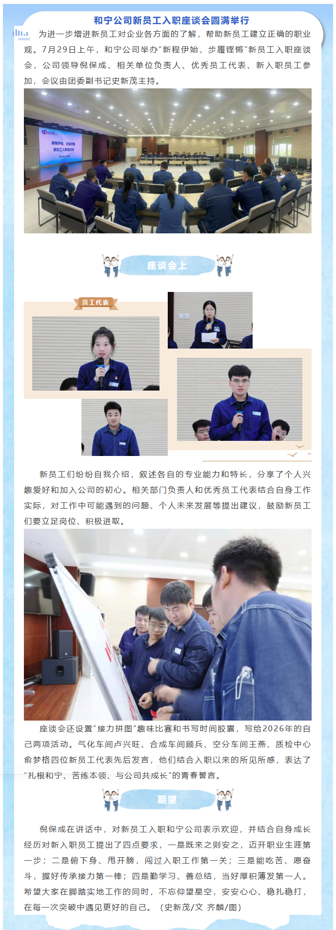 新程伊始 步履鏗鏘丨和寧公司新員工入職座談會圓滿舉行