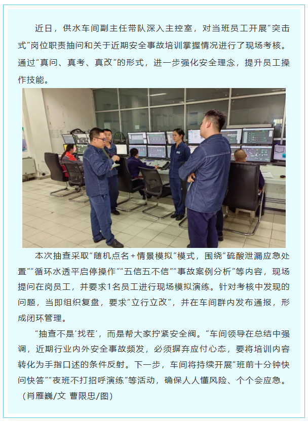 供水車間“以查促學”筑牢安全防線