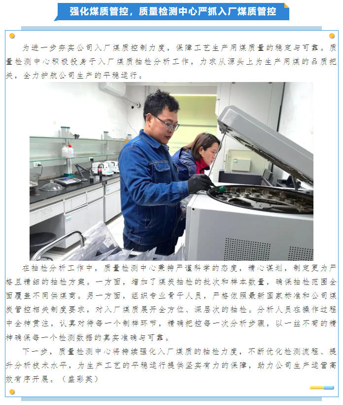 強化煤質管控,質量檢測中心嚴抓入廠煤質管控